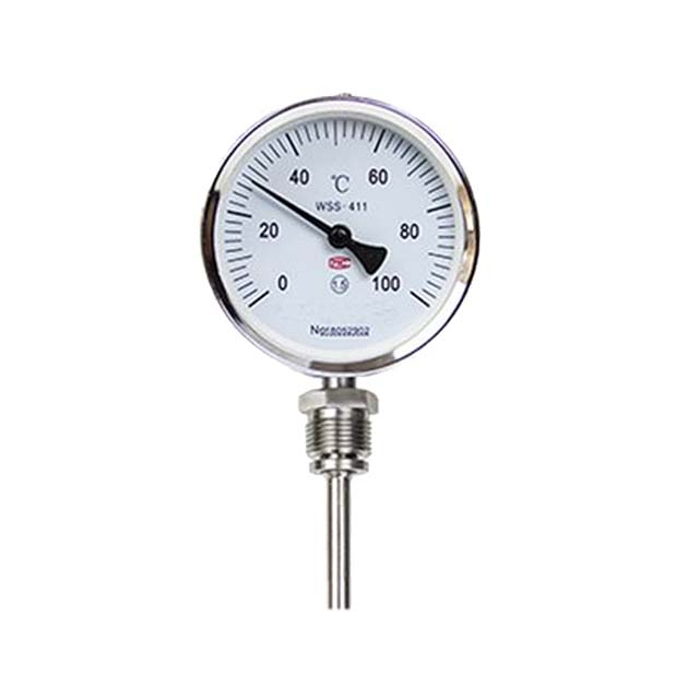 ②徑向型雙金屬溫度計(jì):指針盤與保護(hù)管平行連接。